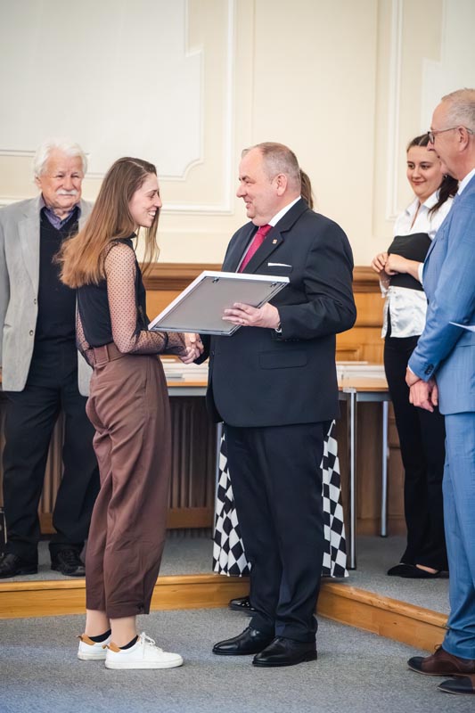 Z rukou předsedy odborné poroty prof. Ing. Rostislava Drochytky, MBA, dr. h.c., a jejích členů Ing. Františka Hasoně a Ing. Tomáše Nosska převzali diplomy i bronzové plakety zástupci oceněných firem i osm studentů.